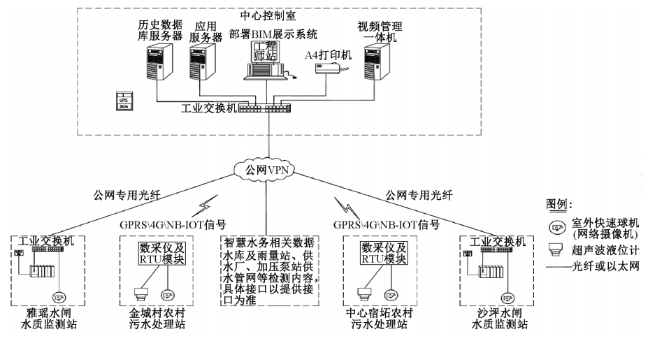 一网:水务基础设施网络,用来将所有的监测信息自动传输至监控中心与分中心,保证监控中心与分中心互联互通;