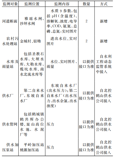 目前一期以类型全方位覆盖为主,实现典型设施的集中监控和管理,主要在集成已有监测数据的基础上,增加河道水质、排水管网、排水口、农村污水处理站流域污染源的监测,同时集成现有供水厂、供水管网监测数据,具体监测内容及数量见表1。