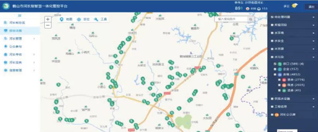 智慧监管是鹤山市示范推进工作的重要创新点之一,充分考虑河长管理过程中出现的信息多方共享、工作精准传达、过程实时监管、公众深度参与等新要求,建设集全流域管控一体、全区域联动协作、全市资源共享为一体化的智慧河长管控平台,形成主动预警式管理模式,实现管理的实时性和穿透力、协同的系统化和制度化、绩效的规范化和动态化、决策的科学化和主动化。