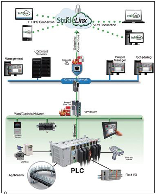 stridelinx云托管vpn可以通过笔记本电脑、智能手机和平板电脑上托管的移动hmi应用程序与工业资产安全地连接。图片来源:automation direct