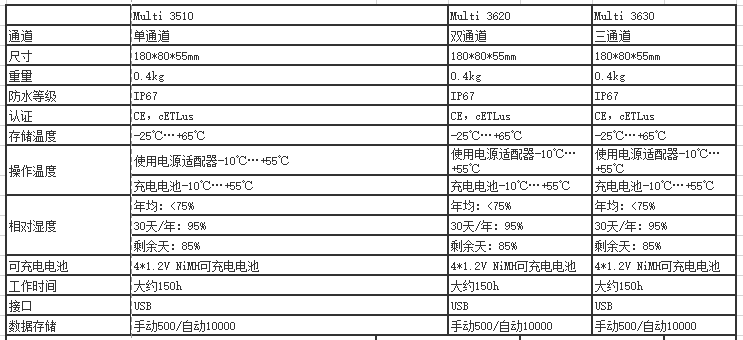 3通道,支持最多三支传感器(可以是同种或不同种的)同时连接,同时测量、显示并同时记录(multi 3620为2通道)。