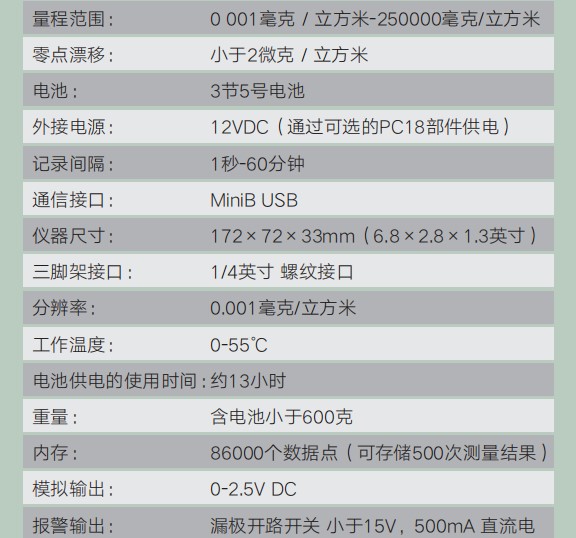 量程范围:0.001毫克/立方米-250000毫克/立方米