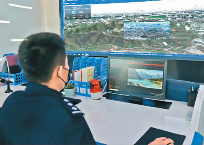 河北省张家口市经开区森林公安局的民警正在运用智慧森林防火和生态保护系统进行森林防火监控。毕瑞翔摄(人民图片)