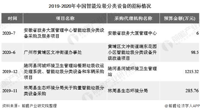 随着垃圾分类、乡村振兴、农村人居环境整治等利好政策的落地执行,为环卫装备,特别是垃圾分类装备带来了增量。但是智能垃圾分类设备一般金额较大,从招标情况来看,智能垃圾分类设备的招标总量金额较大。