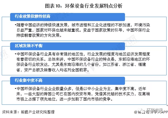 环保设备行业的发展共有三大特点,分别是政策依赖性较高、区域发展不平衡及市场分散,竞争激烈。具体分析如下: