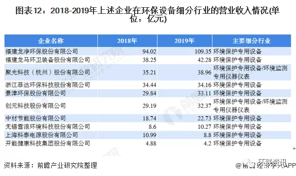 按行业分,营业收入排名前十的企业中,只有聚光科技和创元科技有设计到环境监测专用仪器仪表行业,但没有企业涉及到环境污染处理专用药剂材料行业的业务。