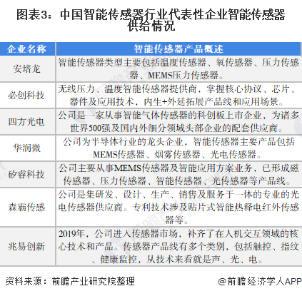 从代表企业智能传感器产品供应产品类型看出,我国企业主要供应的智能传感器类型包括温度传感器、氧传感器、压力传感器、气体传感器、磁传感器、光电传感器等。