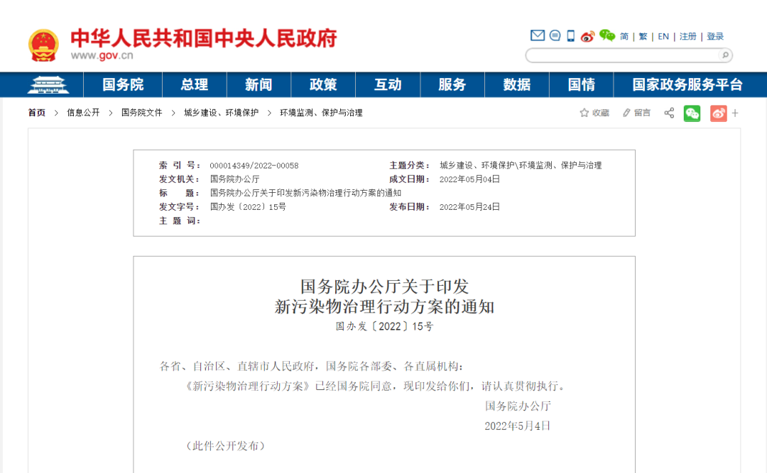 近日,国务院办公厅印发《新污染物治理行动方案》,提出四个方面的主要治理任务: