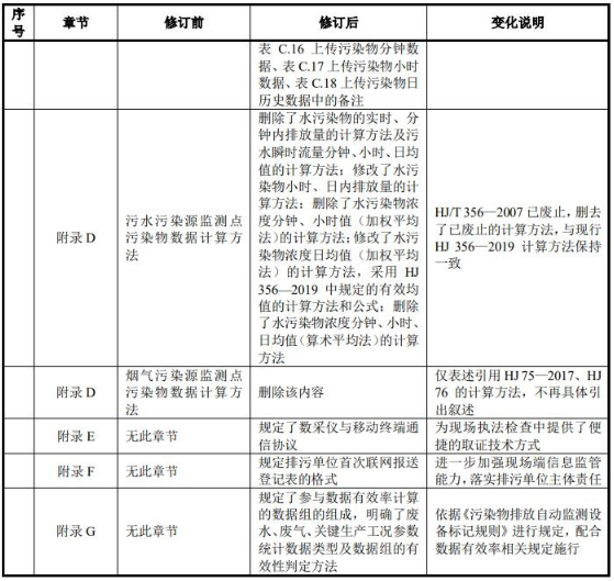 13)增加了附录 F 污染物排放自动监测设施首次联网报送登记表。